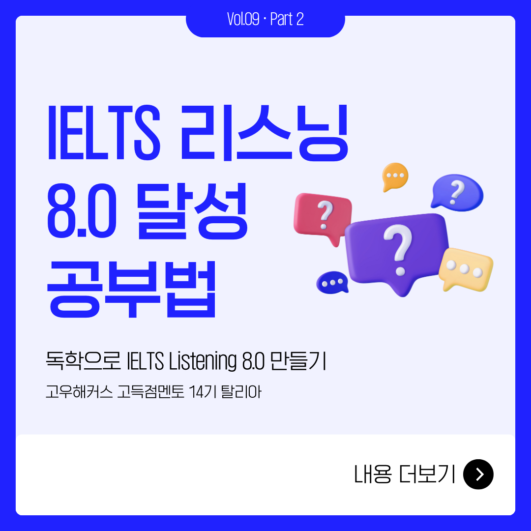 | [IELTS] 9편: IELTS 리스닝 8.0 달성 공부법 - 1 (1) | 2025.11.22 |