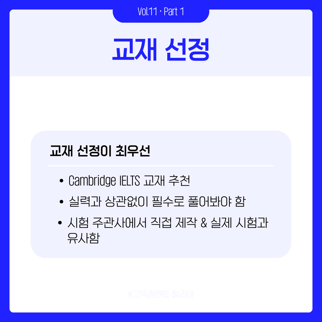 IELTS를 독학으로 준비하다 보면 정말 사소한 것부터 큰 고민까지 끝없이 떠오르게 됩니다. ‘내 공부 방식이 맞는 걸까?’, ‘하루 공부량은 어느 정도가 적당할까?’ 저 역시 똑같은 질문을 수도 없이 되묻던 사람이라, 혼자 공부하는 분들이 겪는 막막함을 잘 알고 있습니다. 이번 카드뉴스 1편에서는 제가 실제로 IELTS를 준비할 때 사용했던 하루 루틴을 정리해 보았습니다. 교재를 어떻게 골랐는지, 하루 공부량을 어떤 기준으로 정했는지, 그리고 영역별로 어떤 방식으로 공부했는지까지, 독학러라면 반드시 고민하게 되는 부분들만 골라 담았습니다. 아직 전체 공부법의 절반 정도만 이야기했지만, 이 기본 구조만 잡아도 공부 흐름이 훨씬 안정적으로 변할 거예요. 여러분의 루틴을 설계할 때 작은 도움이 될 수 있으면 좋겠습니다.