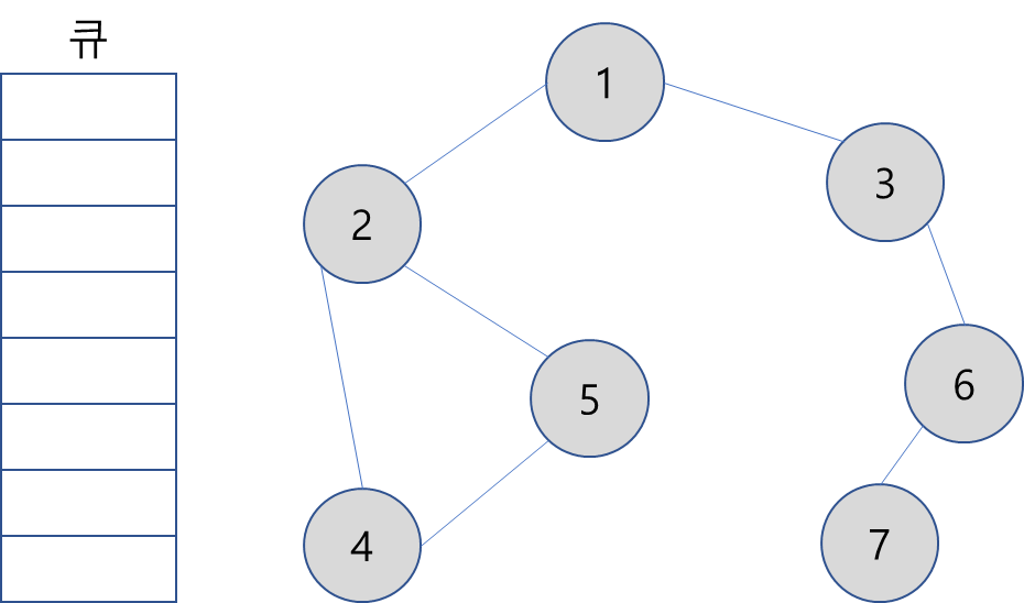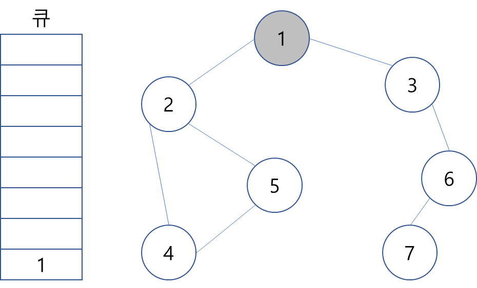 1. 시작 노드인 1을 큐에 삽입하고 방문 처리.