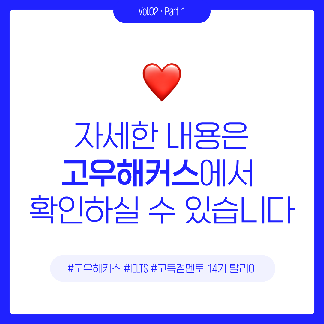 안녕하세요. 고득점멘토 14기 탈리아입니다!저번 칼럼에서는 IELTS 독학 로드맵 짜는 방법과, 제가 직접 독학하며 느낀 경험담을 나눴습니다. 그 글에서 “어떻게 공부할까?”에 대해 이야기했다
