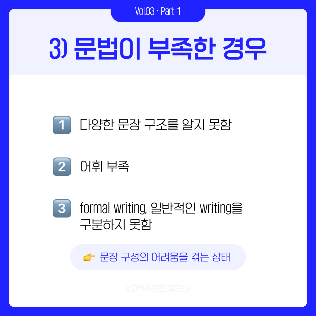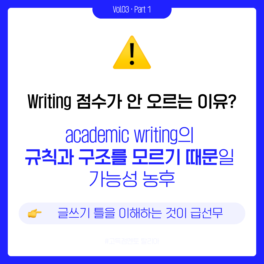왜 글이 막히는지 원인을 정확히 아는 것이 Writing 점수를 올리는 첫걸음이라 생각합니다. 이번 카드뉴스가 여러분의 시행착오를 줄이는 작은 힌트가 되길 바랍니다.